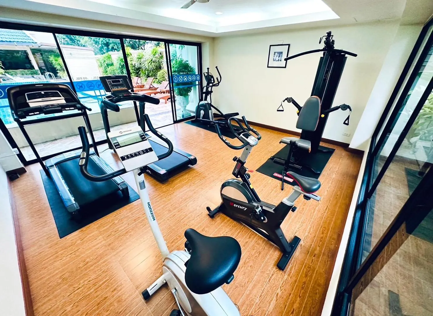 Guests can work out in a fitness area during their stay.